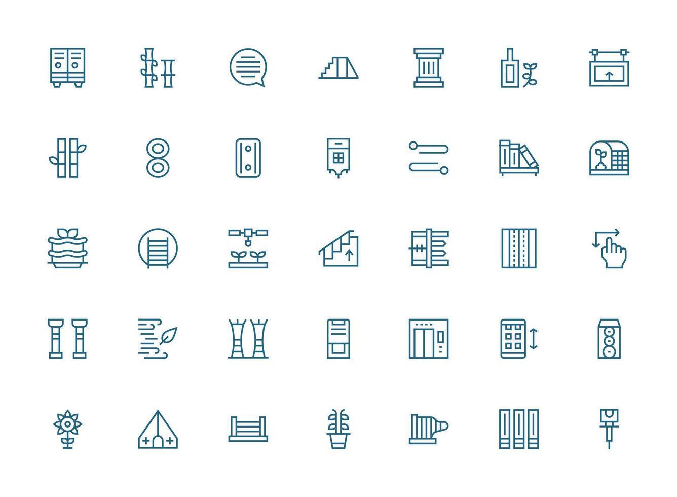 Regular Clean Line Style Vertical Icons with 35 Vectors Reliable Icons for All Interfaces Free Vector