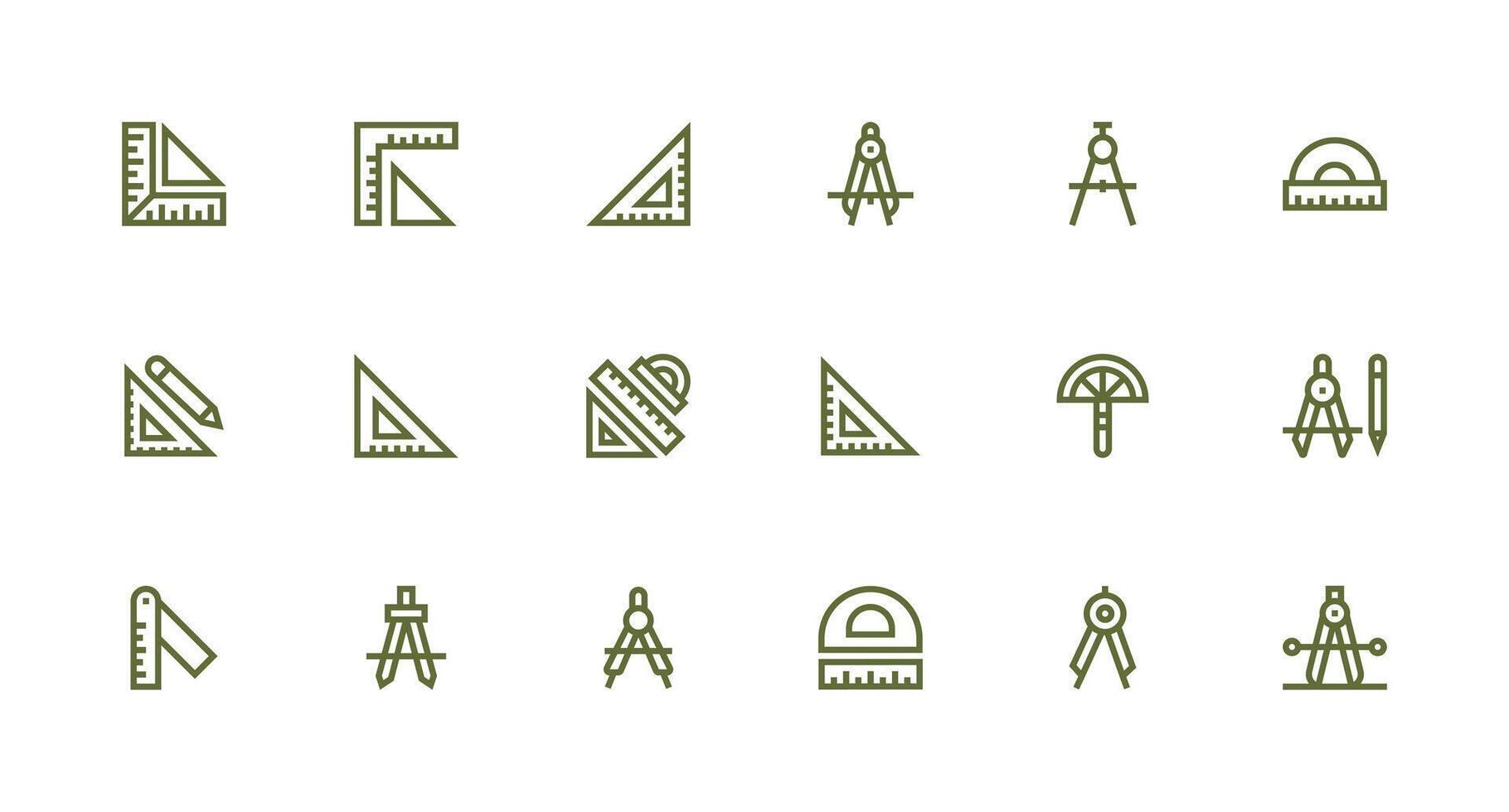 Protractor including 18 Strong Stroke Line Illustrations Minimal Icon Set for Interface Projects vector