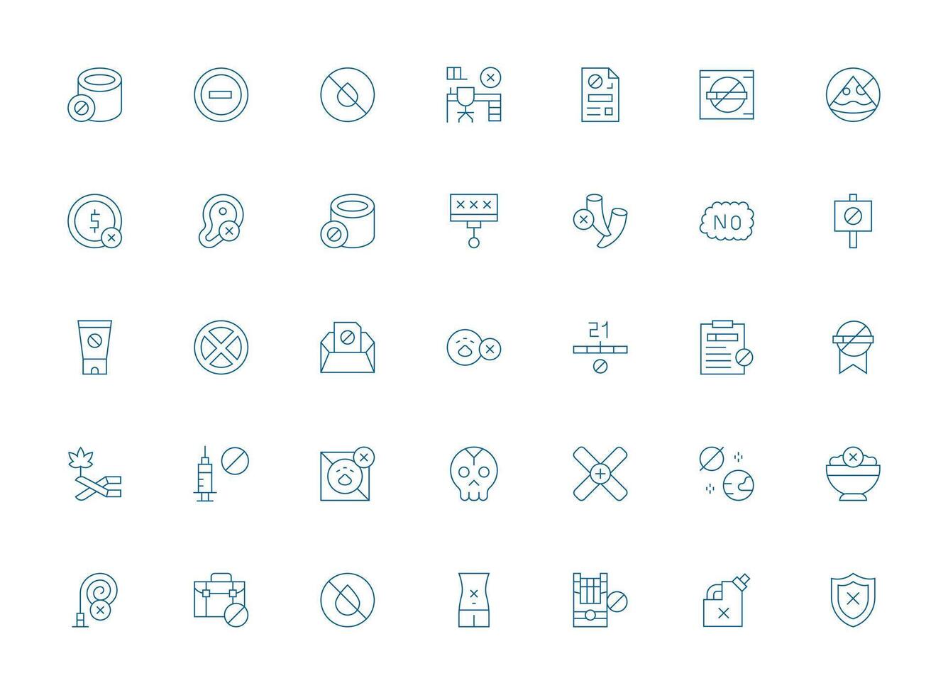 Light Line Style Not Allowed Icons with 35 Vectors All Device Compatible Icon Set