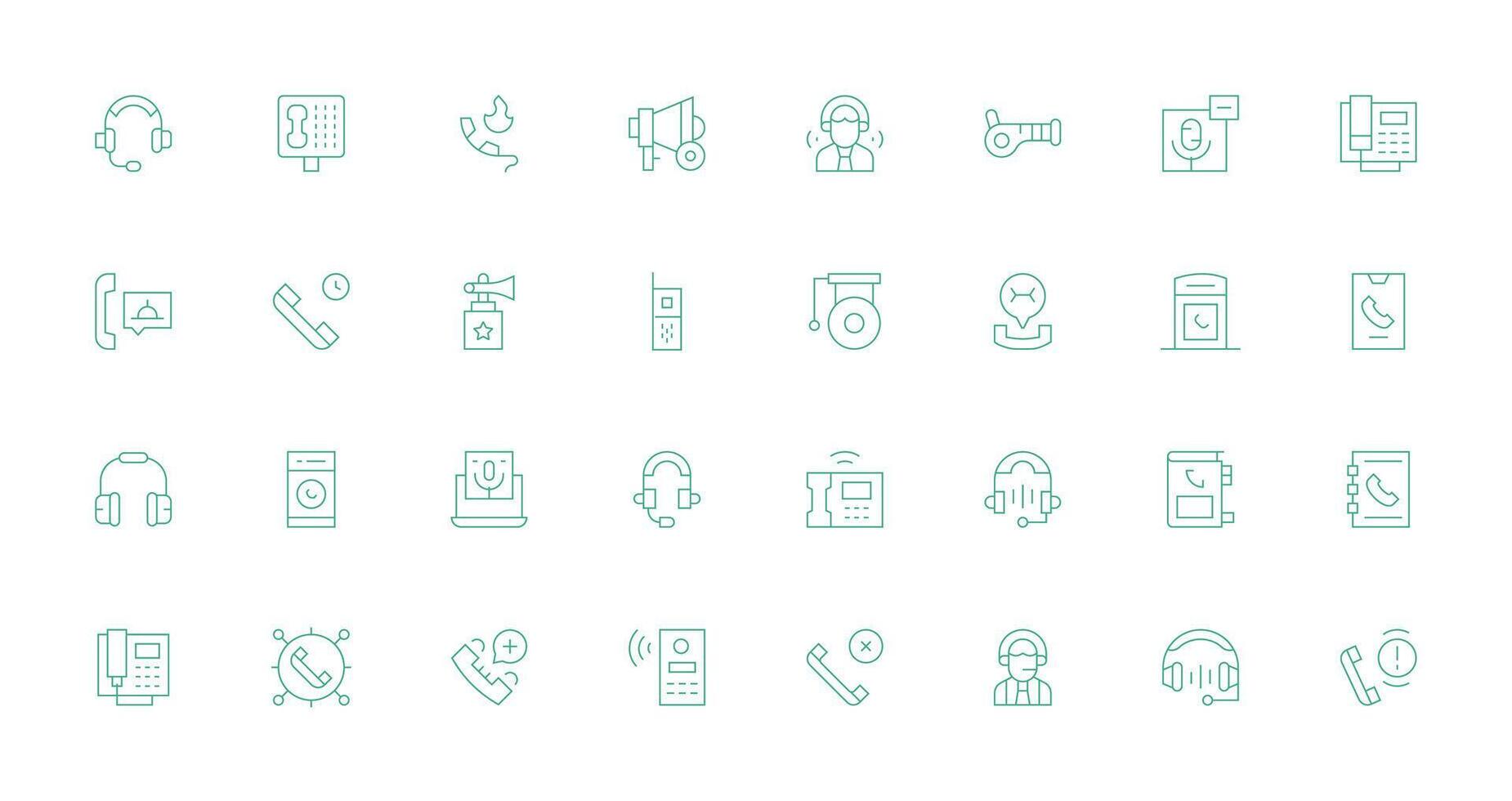 32 Icons for Call in Thin Line Format Theme-Based Icon Pack vector