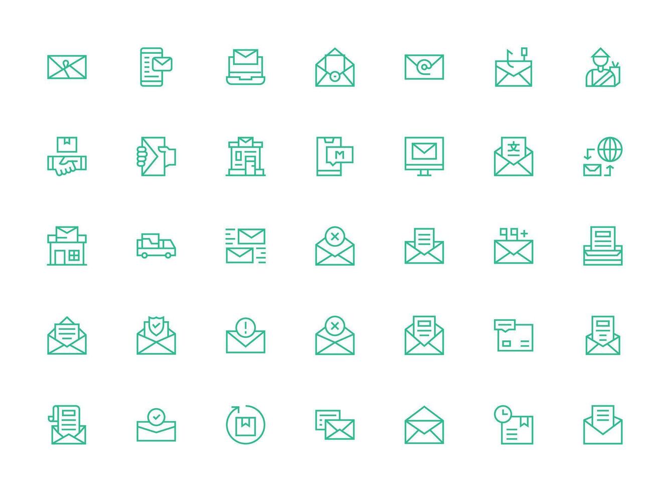 35 Icons for Mail in Regular Clean Line Format Functional Icon Series vector
