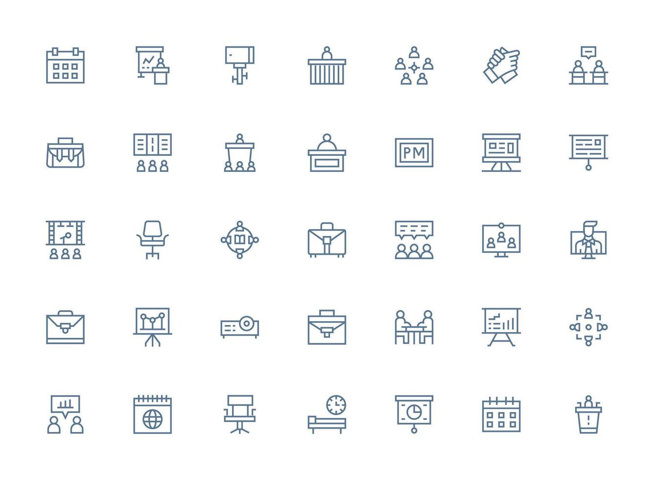 35 Regular Clean Line Icons for Meeting Graphics Well-Structured Icons for Creative Use vector