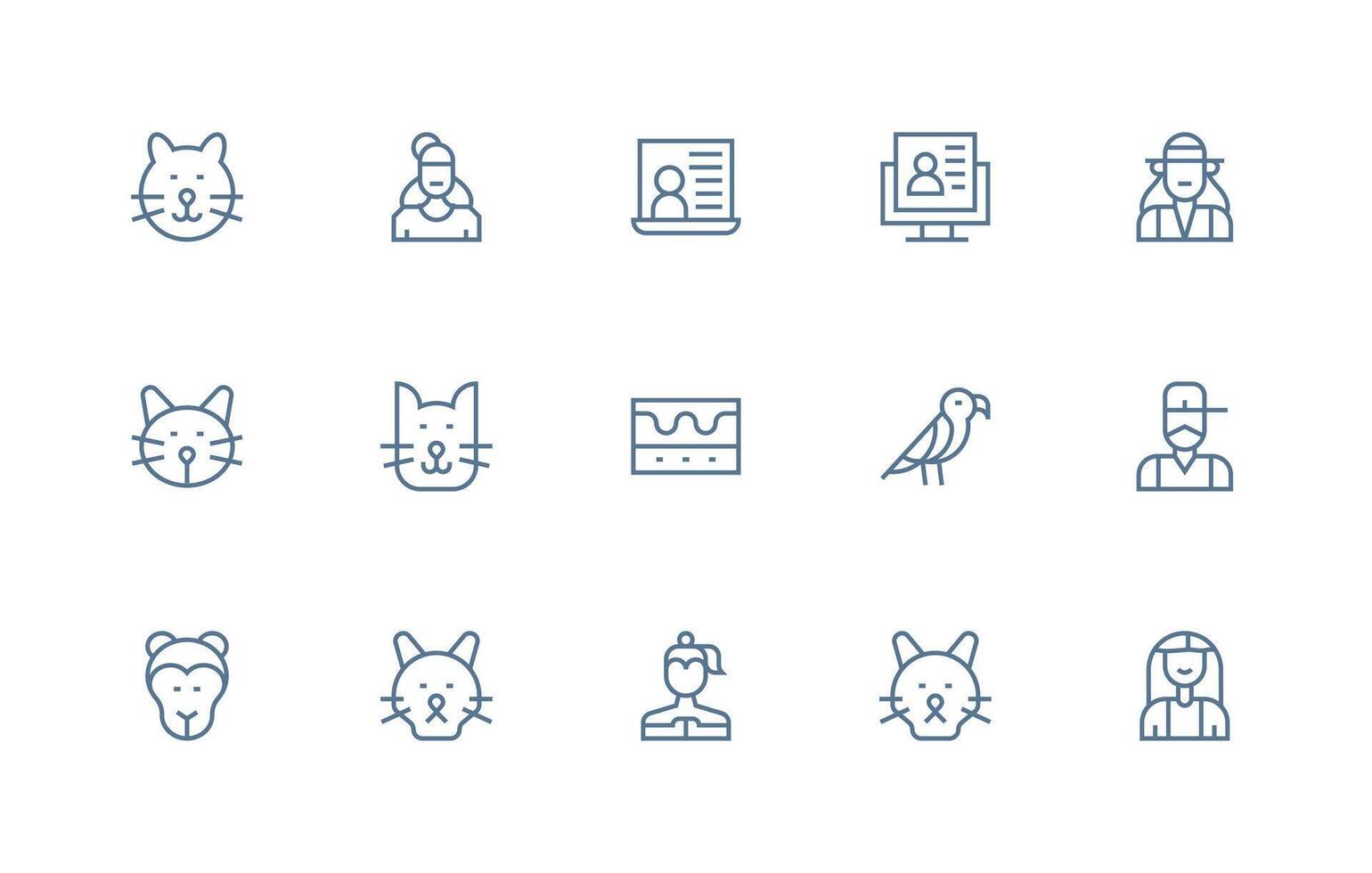 Profile View Design Icons featuring 15 in Regular Line Style Neat Icon Set vector