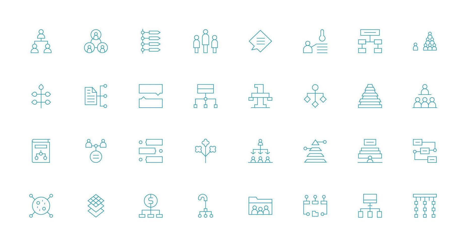 32 Thin Line Style Icons from Hierarchy Collection Interface Icon Collection Free Vector