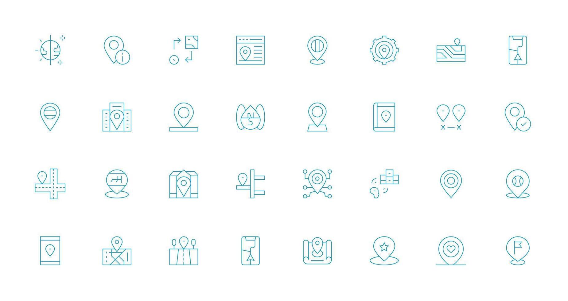 32 Thin Line Icons for Coordinates Graphics Modern Line and Glyph Icon Series Free Vector