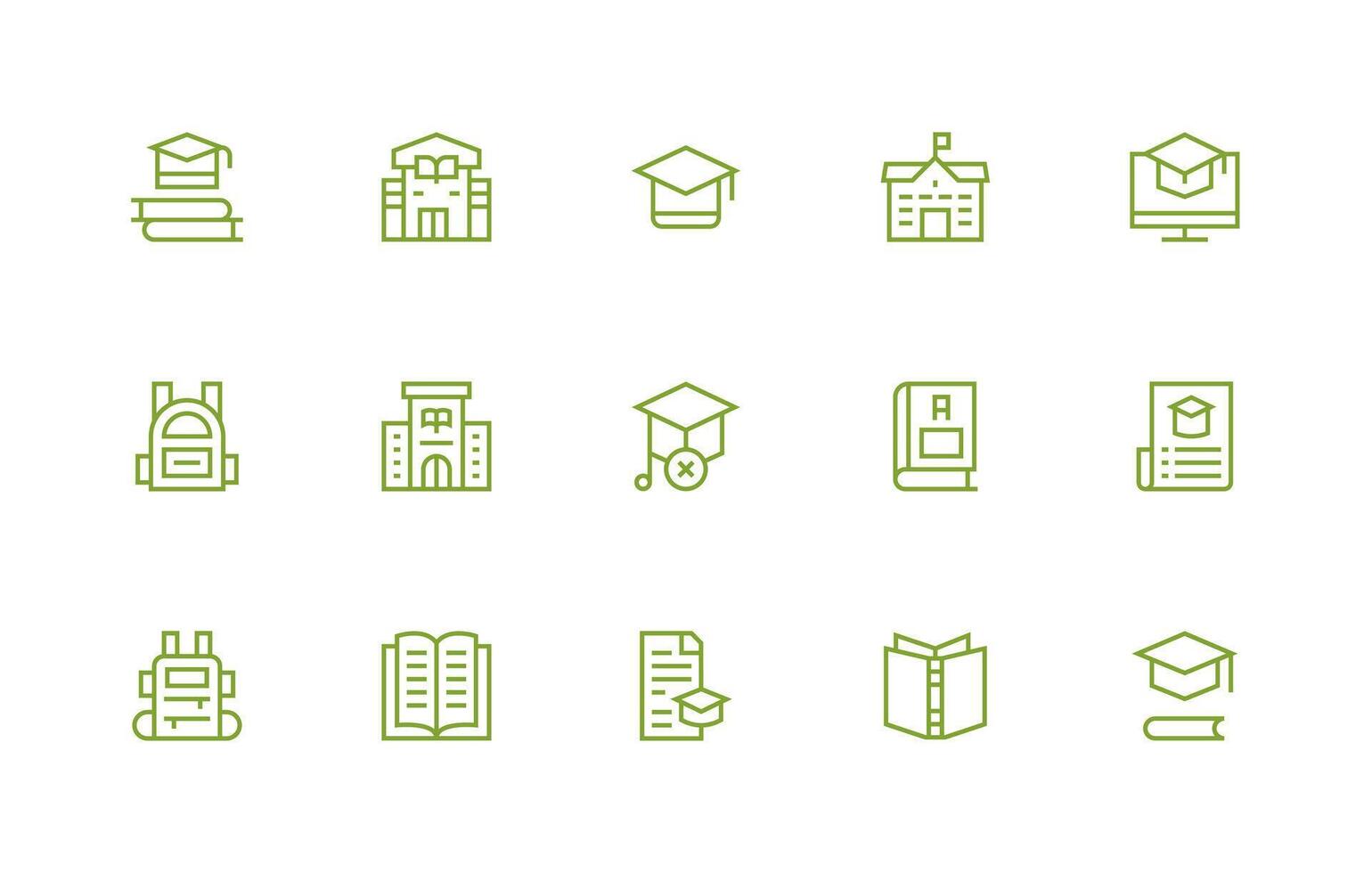 College Icon Set with 15 Regular Line Graphics Pixel Perfect Icon Set vector