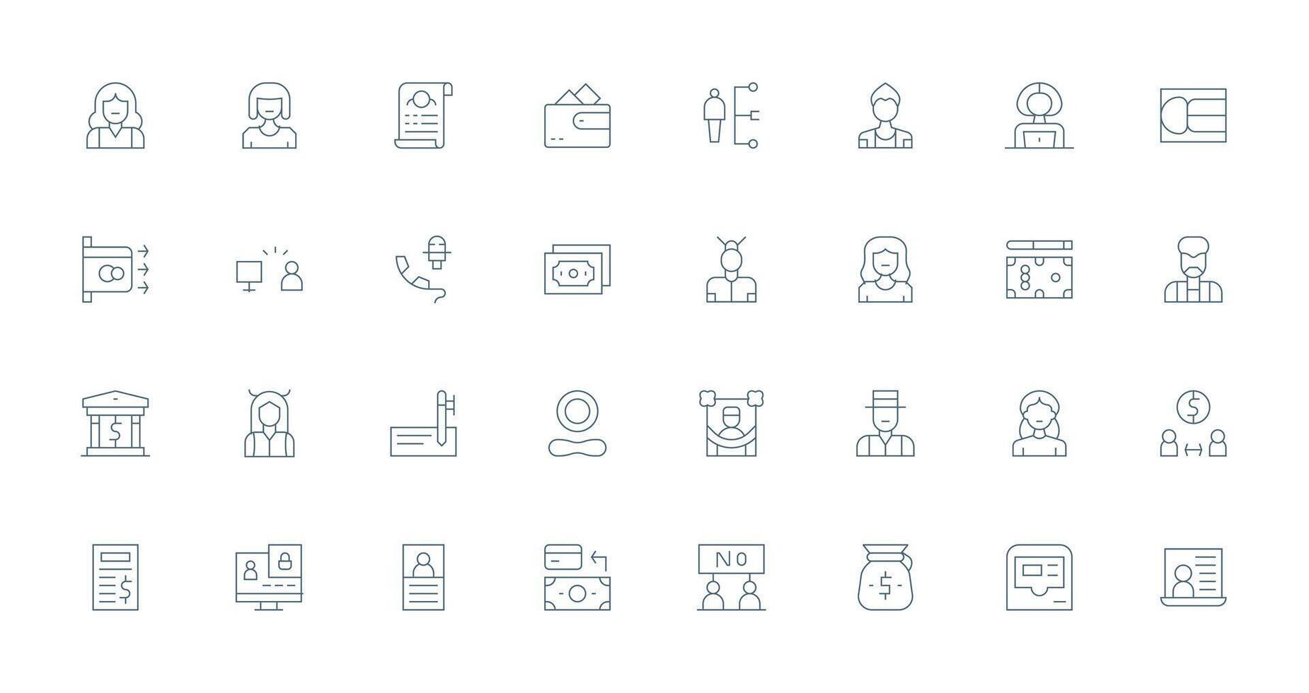 32 Icons for Account in Thin Line Format Icon Set for Projects Free Vector