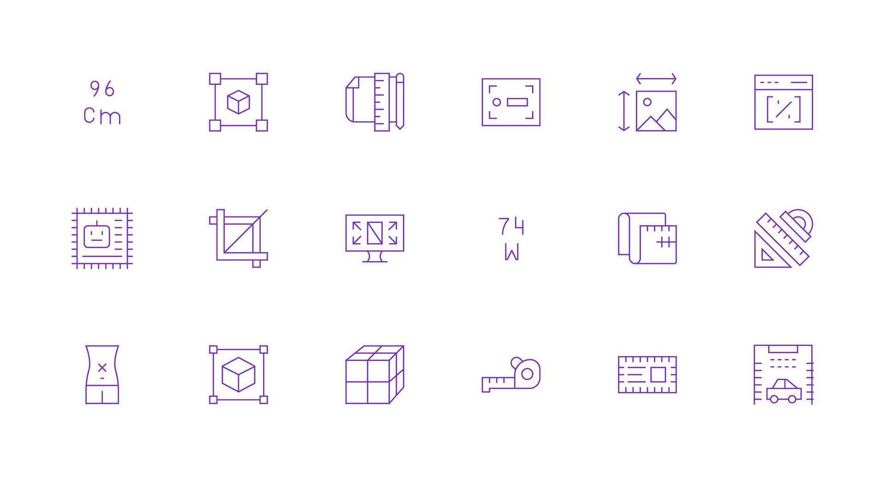 18 Minimal Line Vectors for Dimensions Theme Dashboard Icon Series