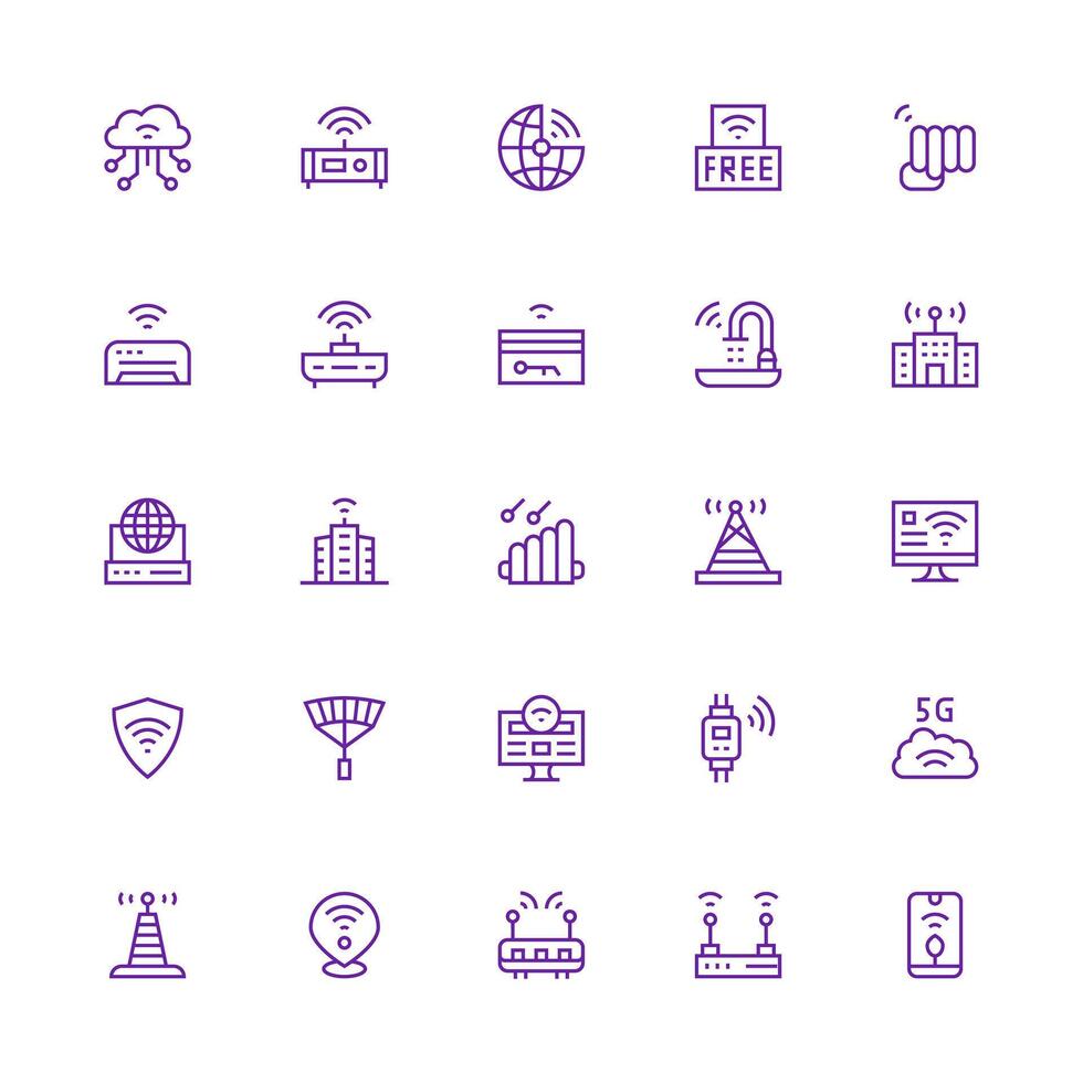Medium Stroke Outline Style Wifi Icons with 25 Vectors Quick Access Icons for UI Development Free Vector