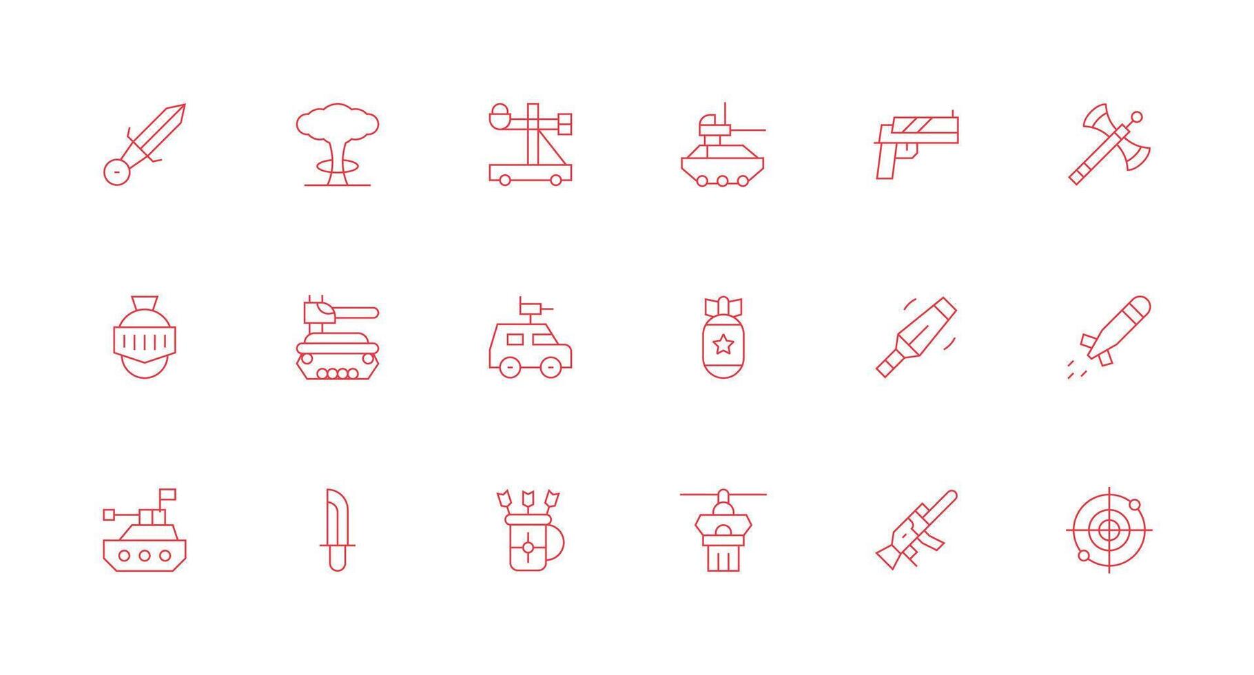 18 Icons for Weaponry in Minimal Line Format Web and App Icon Pack Collection Free Vector