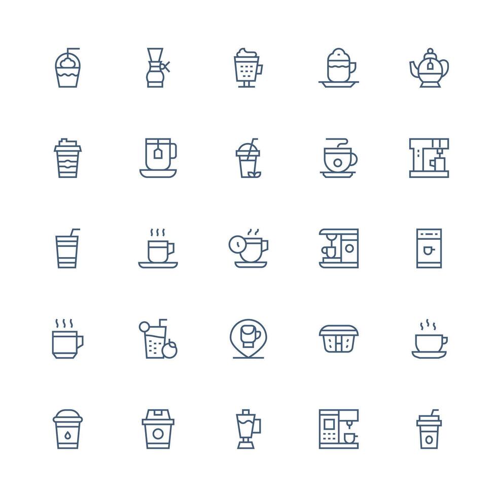 Medium Stroke Outline Style Hot Beverage Icons with 25 Vectors Flexible Icon System for Web Interfaces Free Vector