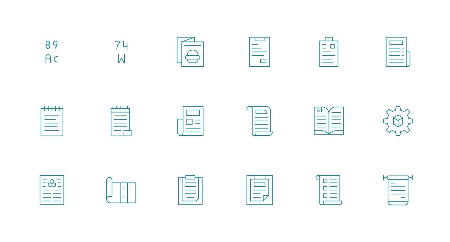 Specifications Set with 18 Minimal Line Icons Full Icon Library for UI Designers Free Vector