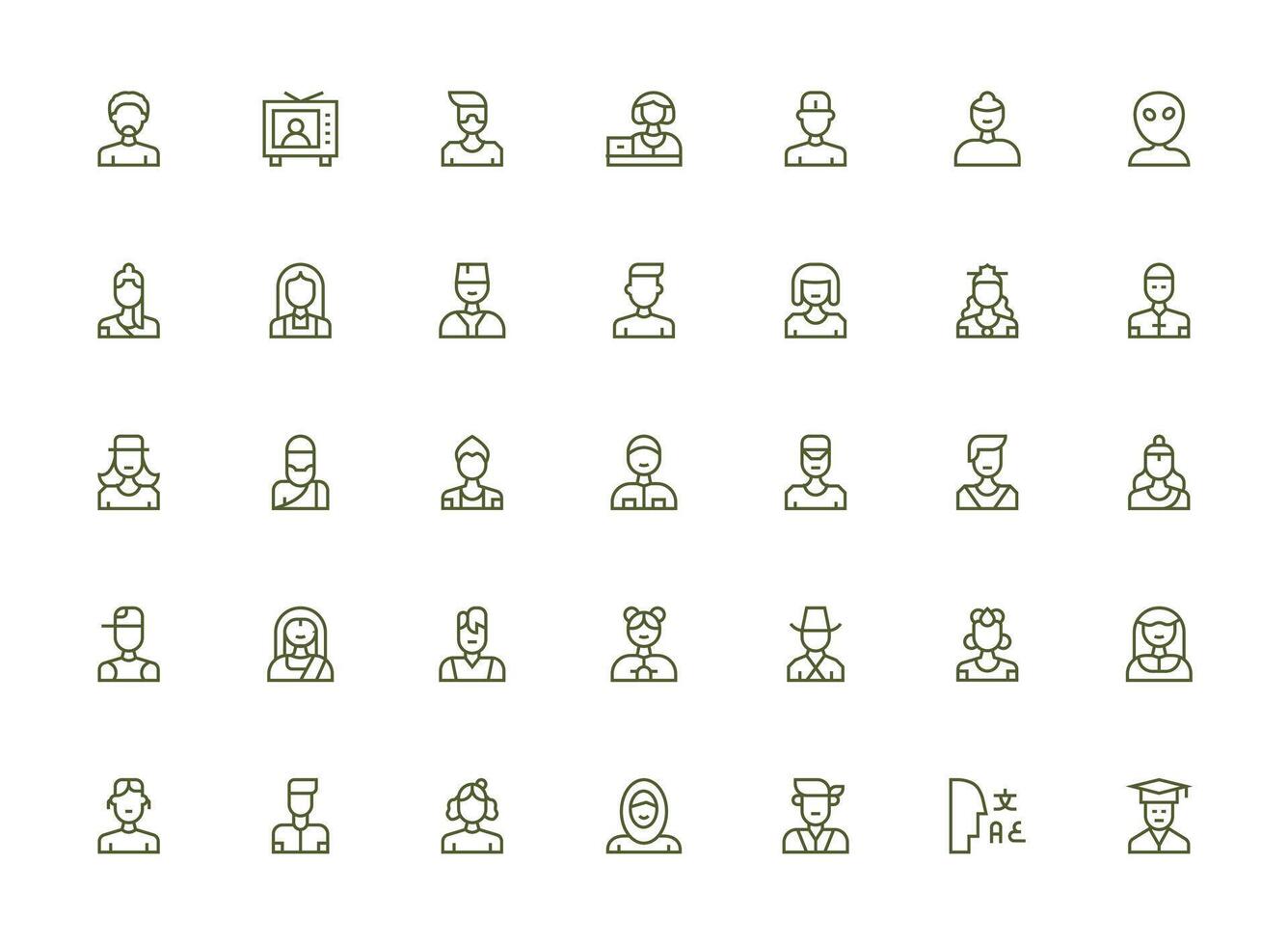Regular Clean Line Style Avatar Icons with 35 Vectors Responsive Icon Set for Flexible Layouts Free Vector