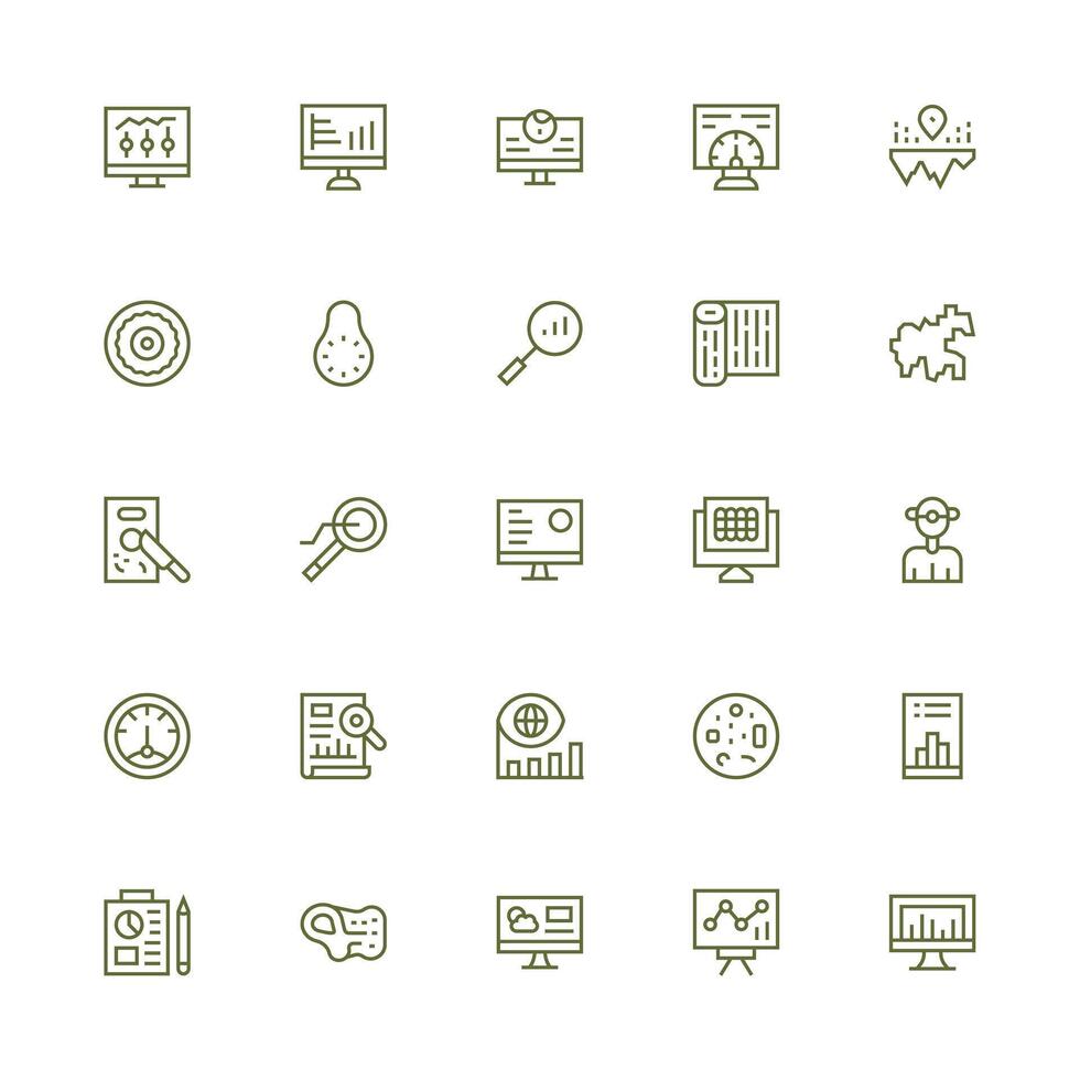 Visualization Design Icons featuring 25 in Medium Stroke Outline Style Neatly Designed Icons for Web Platforms Free Vector