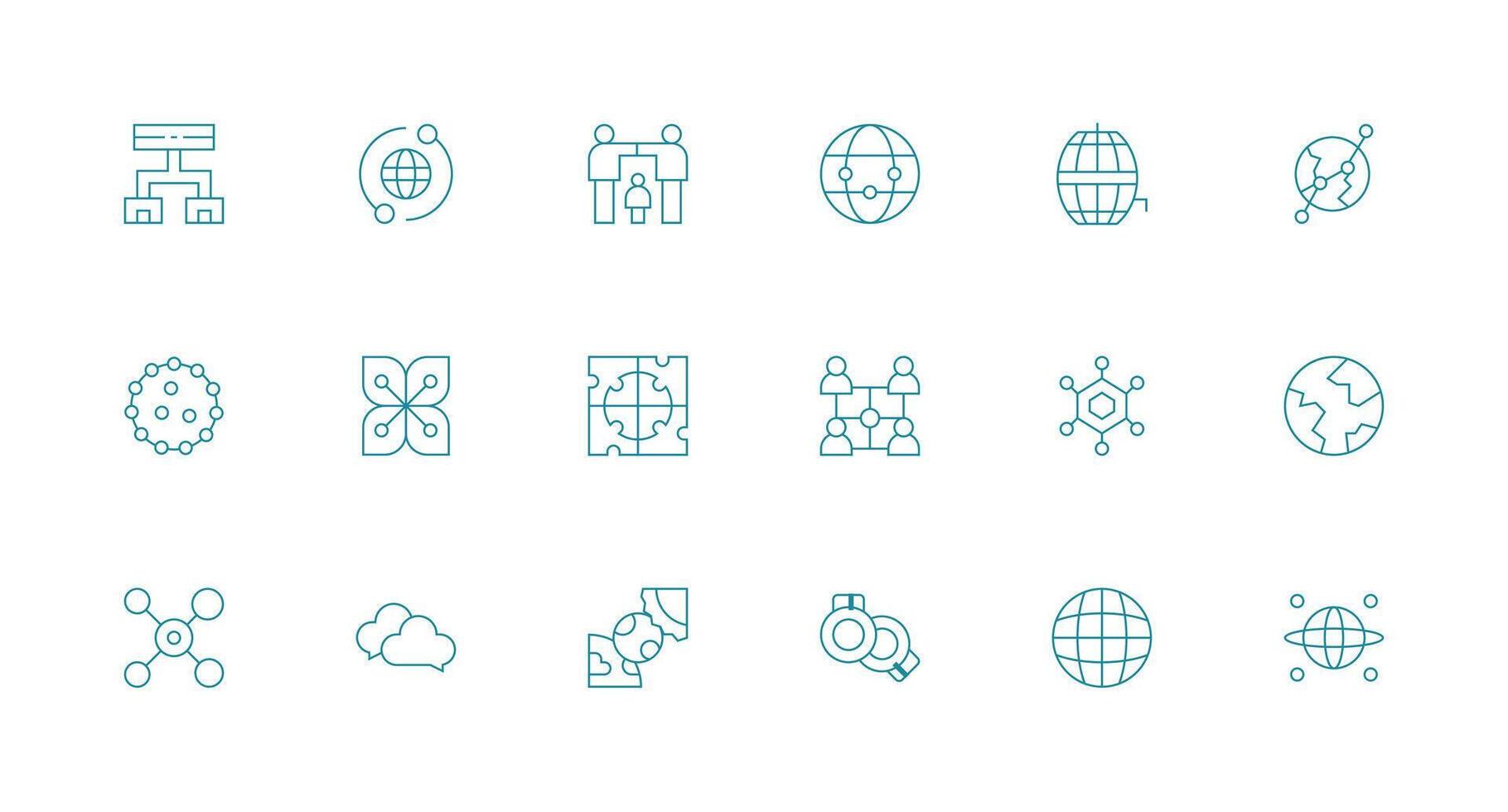 Interconnected Design Icons featuring 18 in Minimal Line Style Pixel Perfect Icons for Modern Apps vector