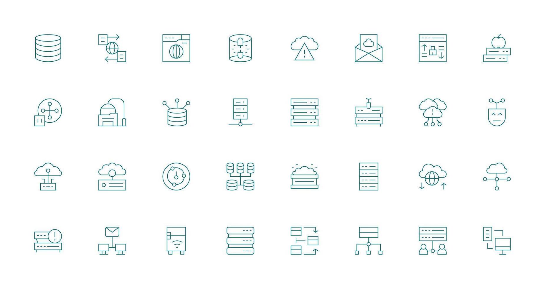 32 Thin Line Icons for Server Graphics Icon Set for Apps Free Vector
