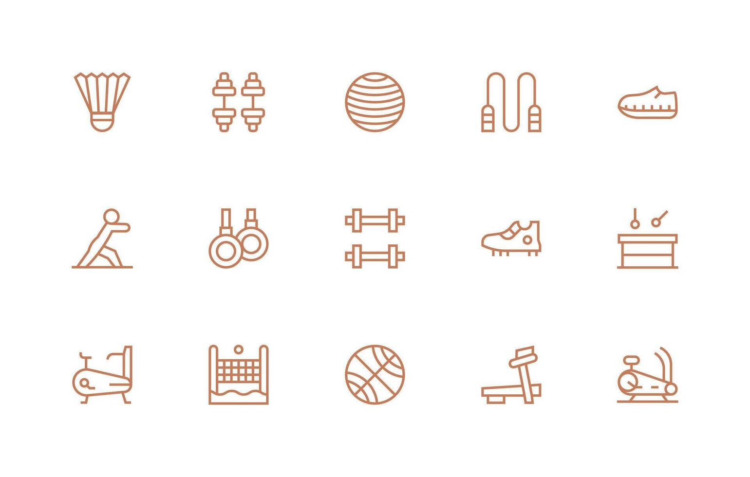 Physical Activity Design Icons featuring 15 in Regular Line Style Icon Set for Apps Free Vector