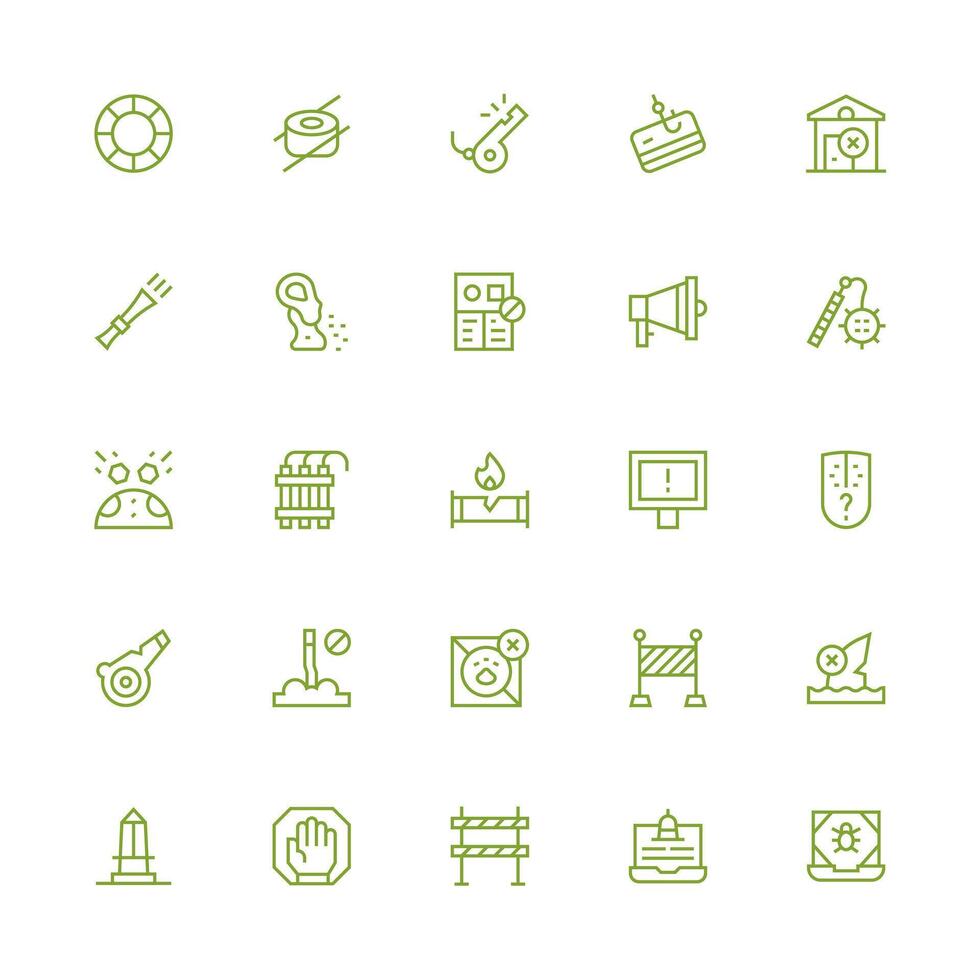 Warning Icon Set with 25 Medium Stroke Outline Graphics Minimal Icon Set for Interface Projects vector