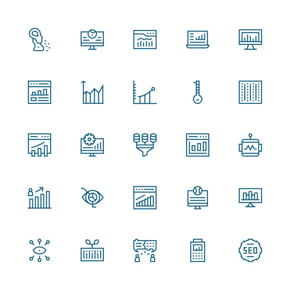 Analytics Icon Set with 25 Medium Stroke Outline Graphics Clear and Concise Icon Set Collection vector