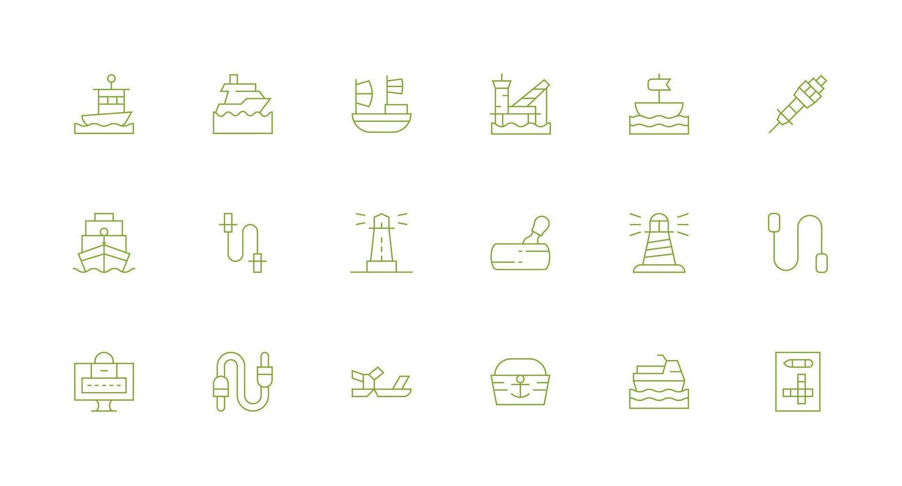 Port Icon Set with 18 Minimal Line Graphics Multi-Purpose Icon Pack for Templates Free Vector