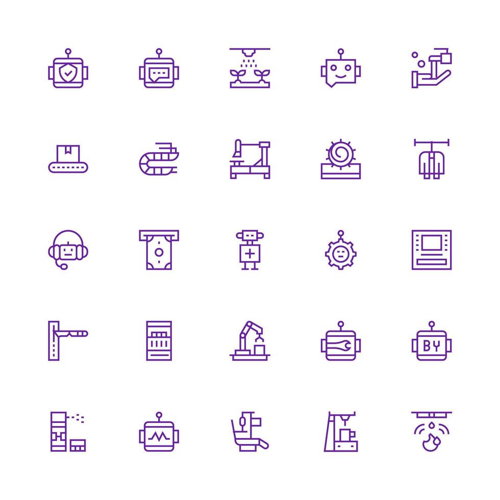 Automated Set with 25 Medium Stroke Outline Icons Style Icon Set vector