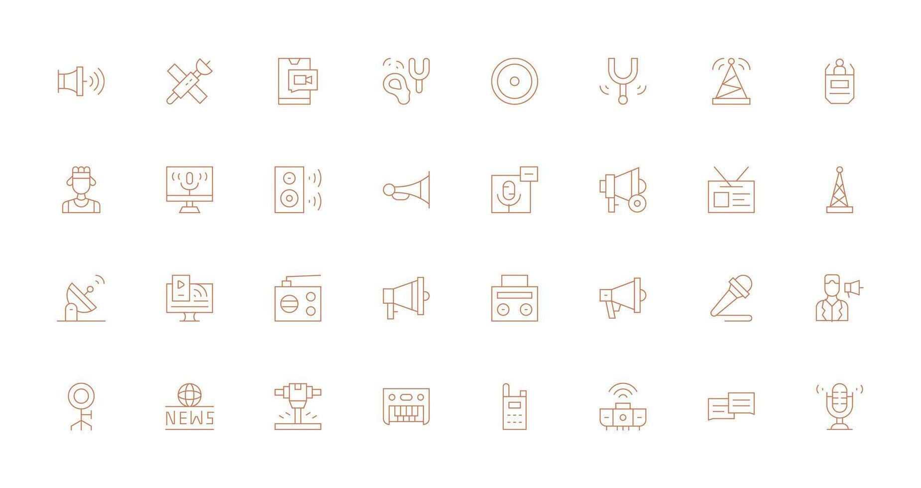 32 Icons for Broadcast in Thin Line Format Pixel Perfect Icon Set Free Vector