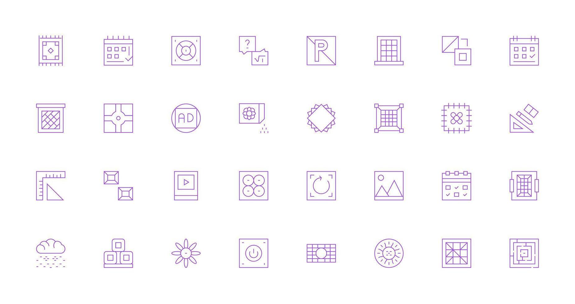 Square Design Icons featuring 32 in Thin Line Style Icon Set Free Vector