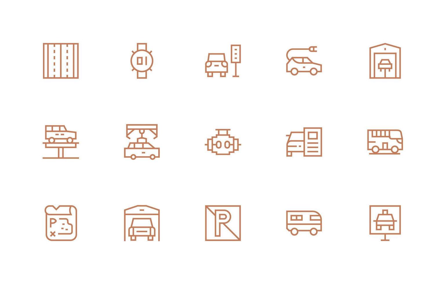 Regular Line Style Automobile Icons with 15 Vectors Icon Set for Web