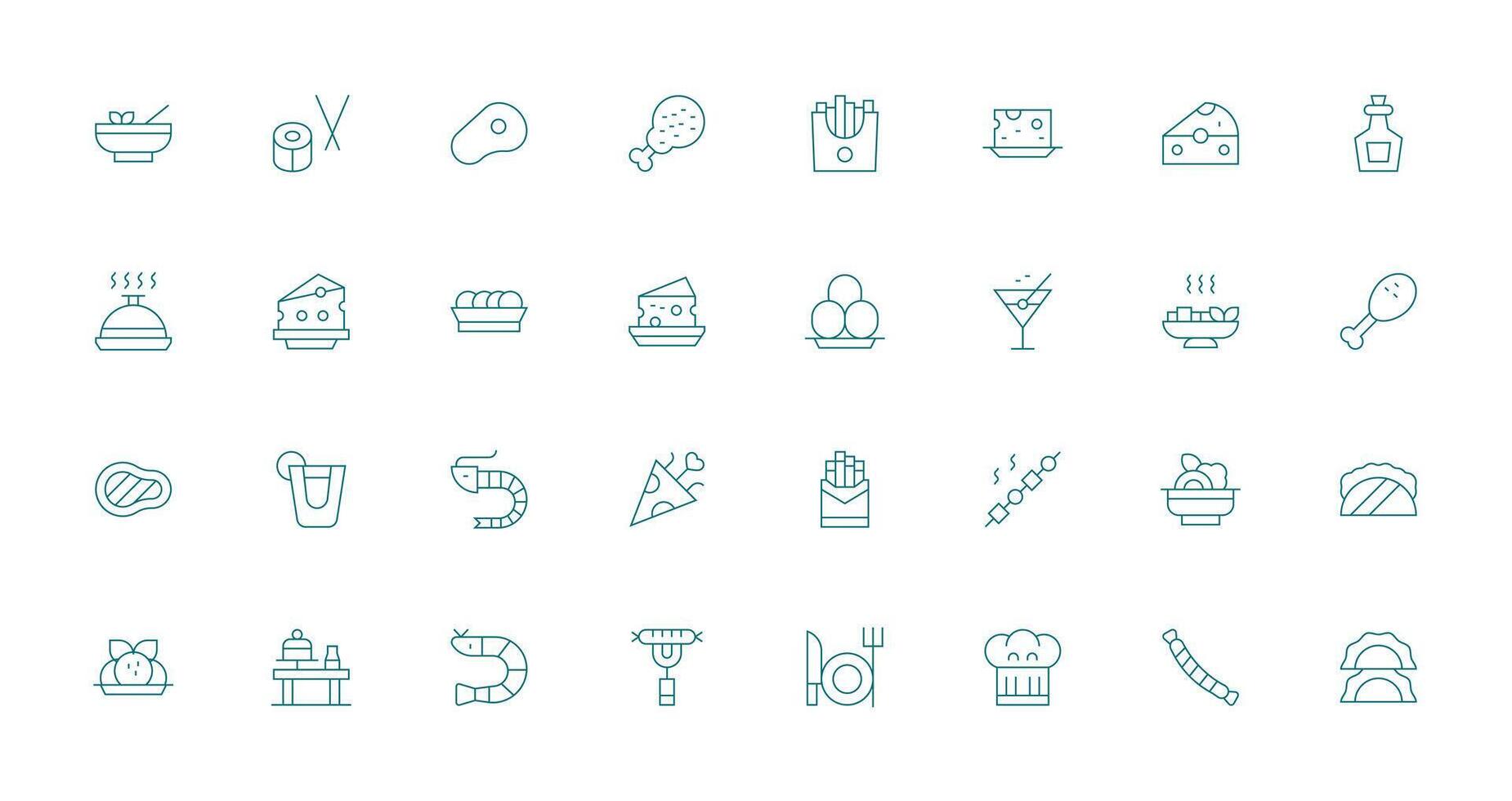 32 Thin Line Style Icons from Appetizer Collection Essential Icons for Rapid UI Building Free Vector