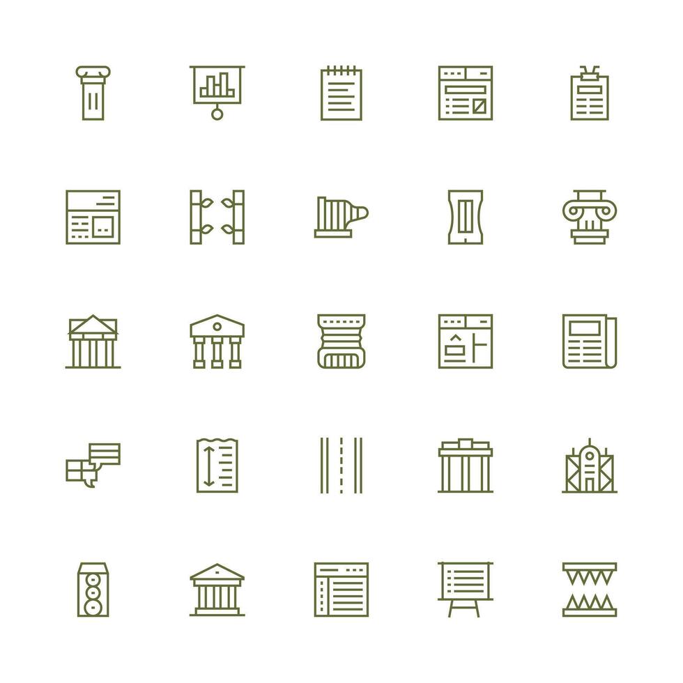 25 Medium Stroke Outline Vectors for Column Theme Simple Icons for Interface and Wireframes
