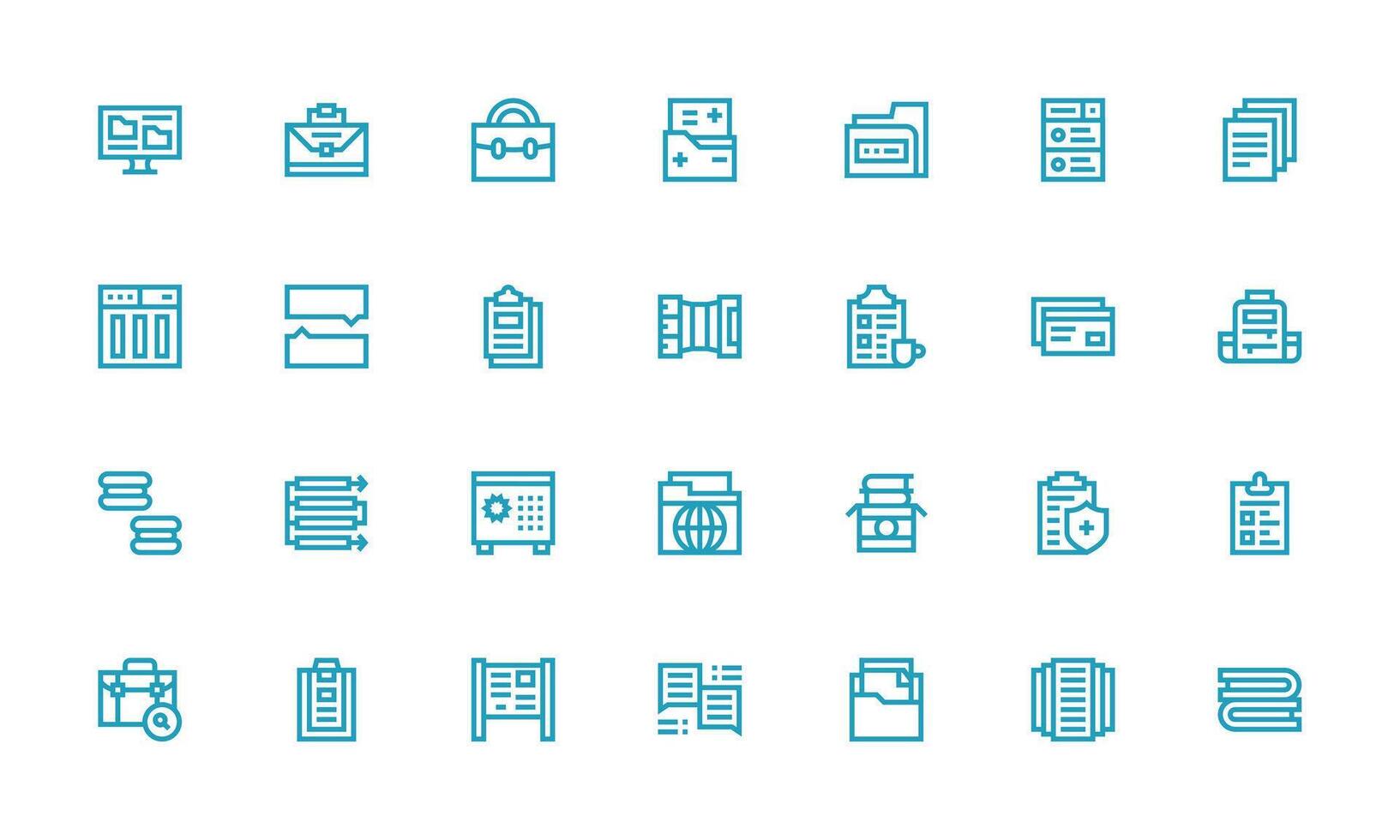 Bold Line Style Documents Icons with 28 Vectors UI and UX Focused Icon Collection Free Vector