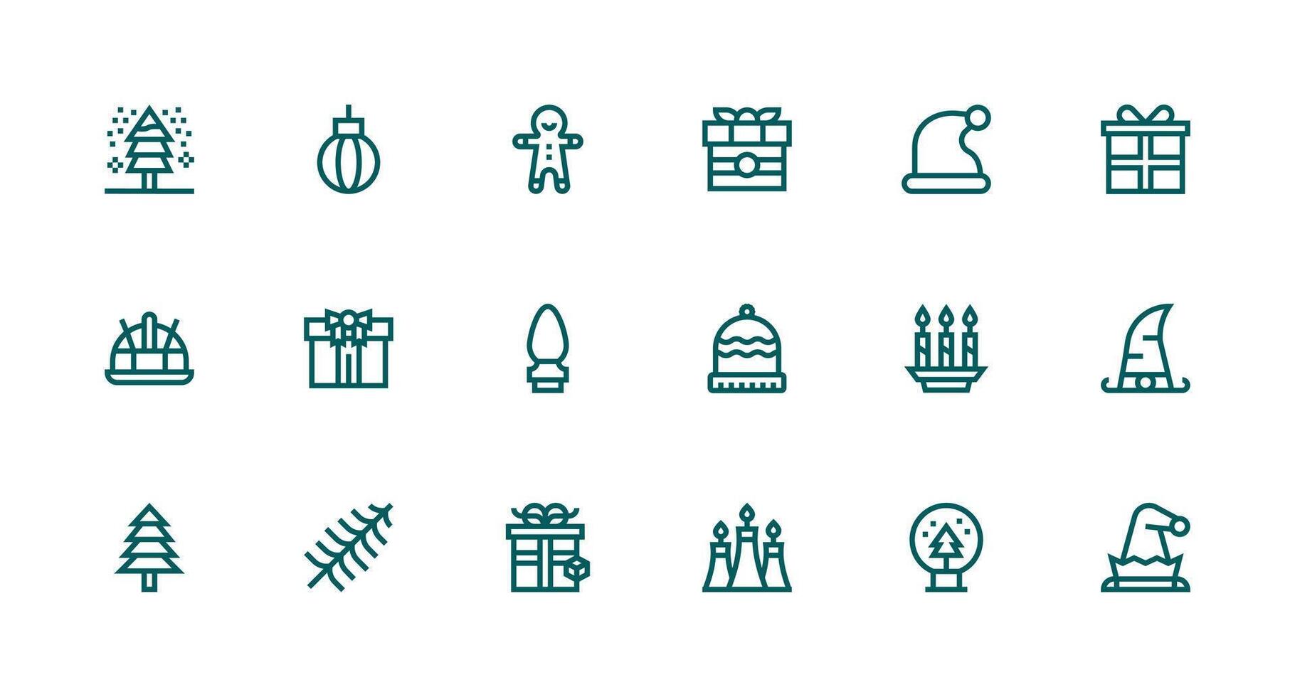 Strong Stroke Line Style Christmas Icons with 18 Vectors Multi-Purpose Icon Set Free Vector