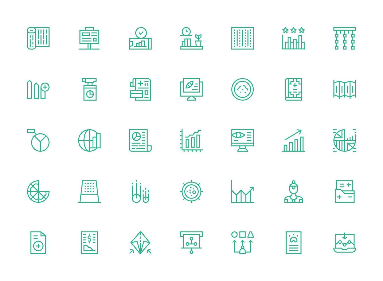 Chart Set with 35 Regular Clean Line Icons Sharp Icons for Presentations Free Vector