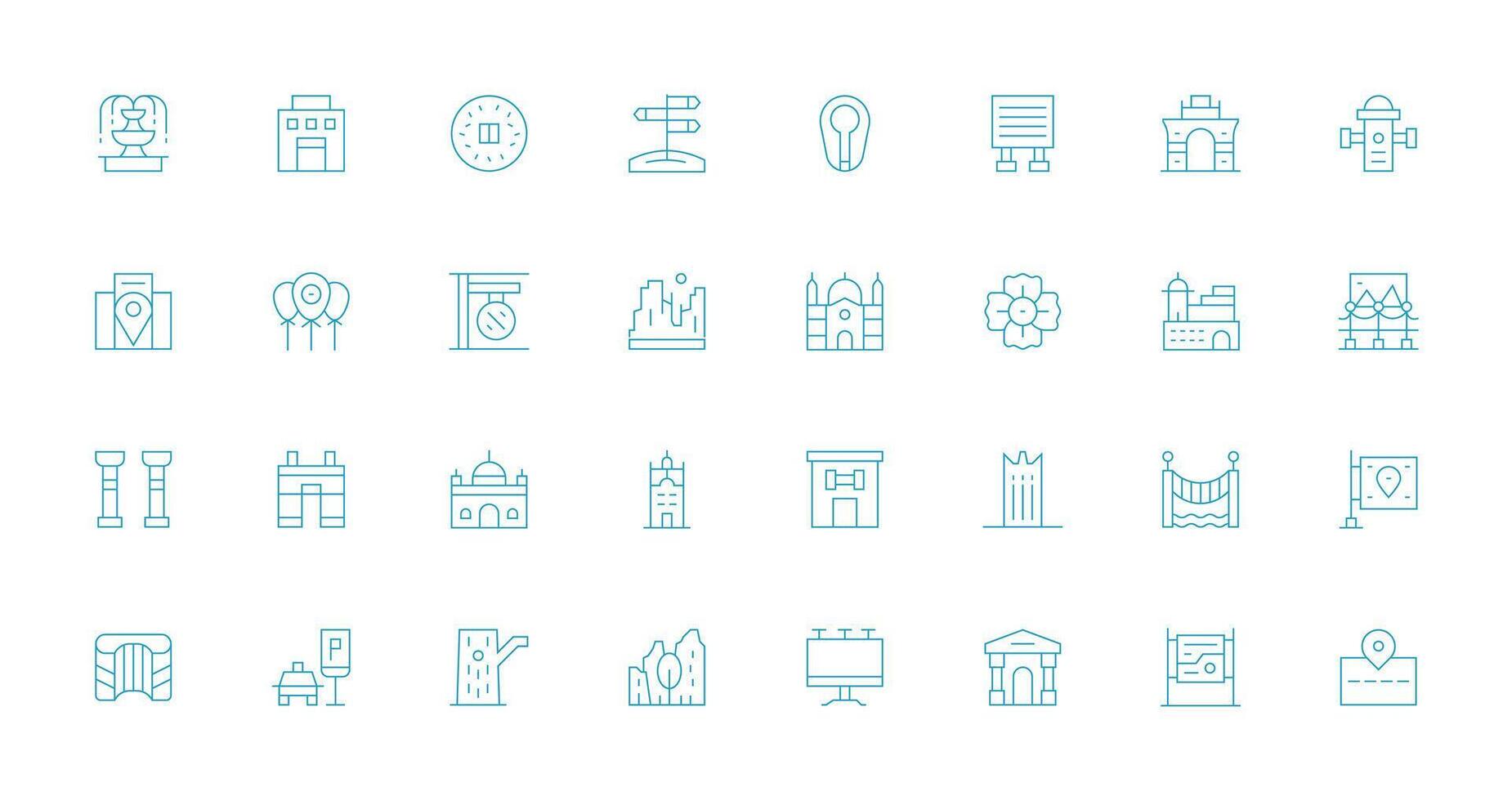32 Icons for Town in Thin Line Format Pixel Perfect Icons for Modern Apps vector