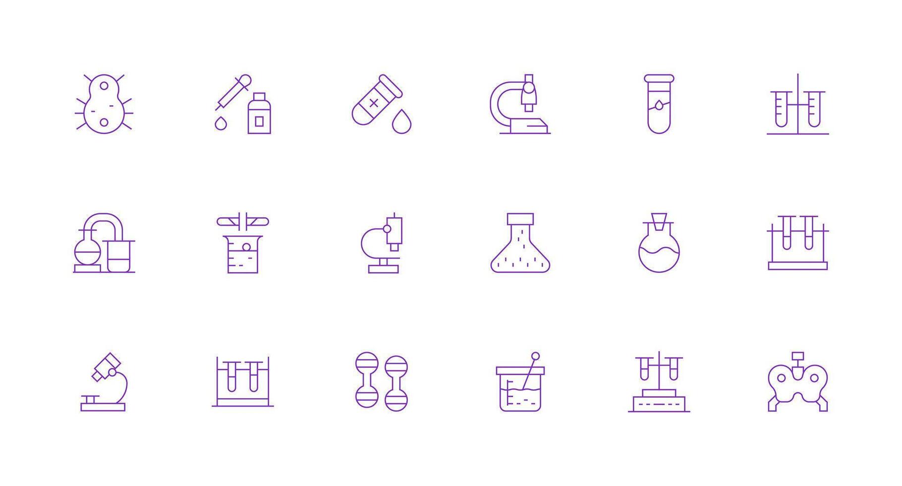 18 Minimal Line Style Icons from Lab Equipment Collection Simplified Icon Pack for Visual Tools vector