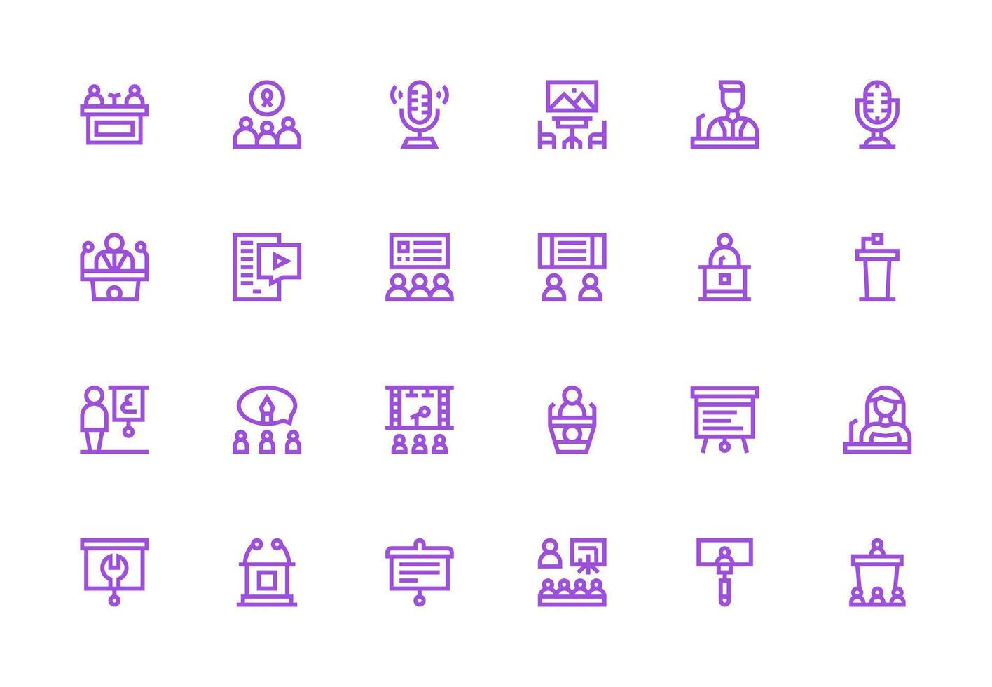 Lecture Visual Pack containing 24 Thick Line Line Icons Clear and Concise Icon Set Collection vector