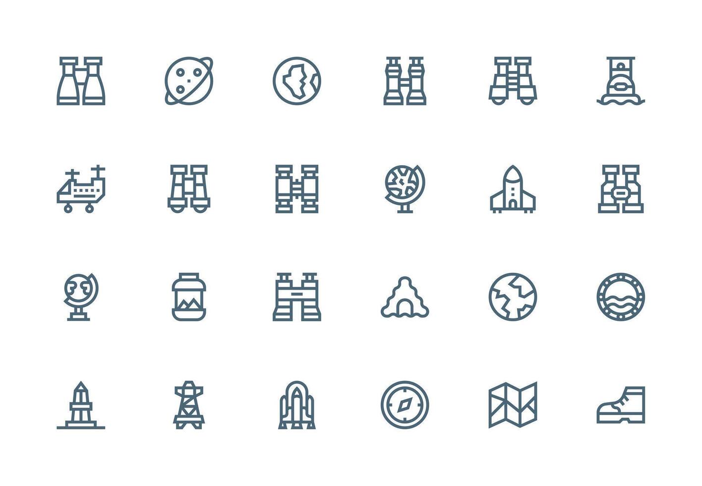 24 Thick Line Line Vectors for Exploration Theme Multi-Purpose Icon Set Free Vector