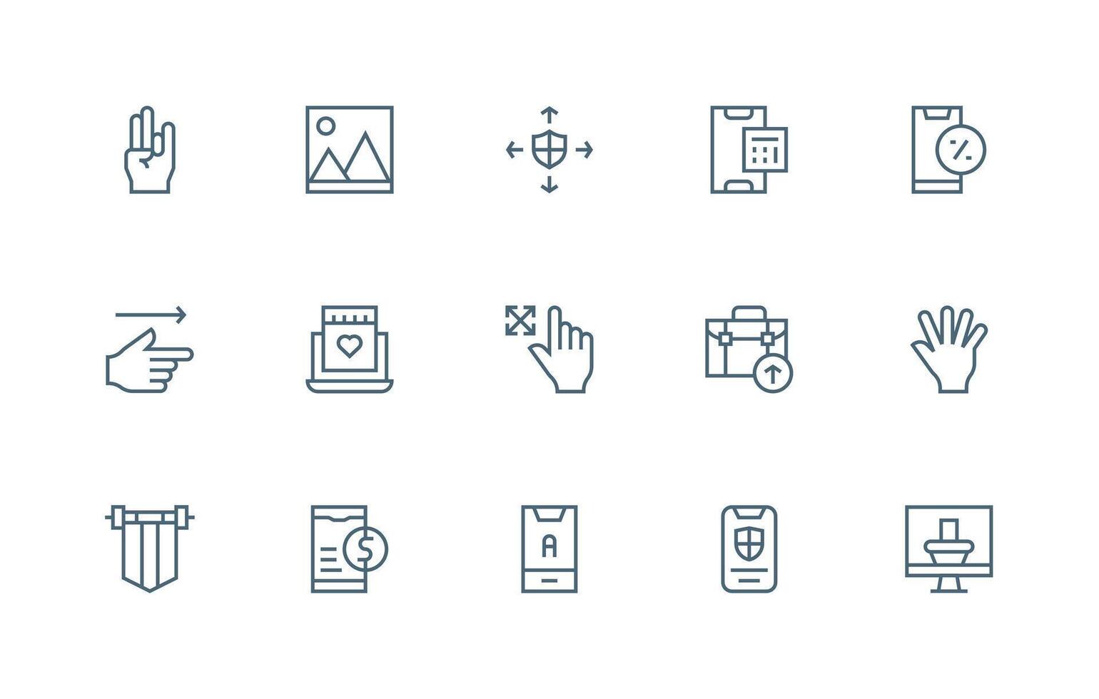 15 App Icons in Regular Line Aesthetic High-Resolution Icons for Any Platform vector