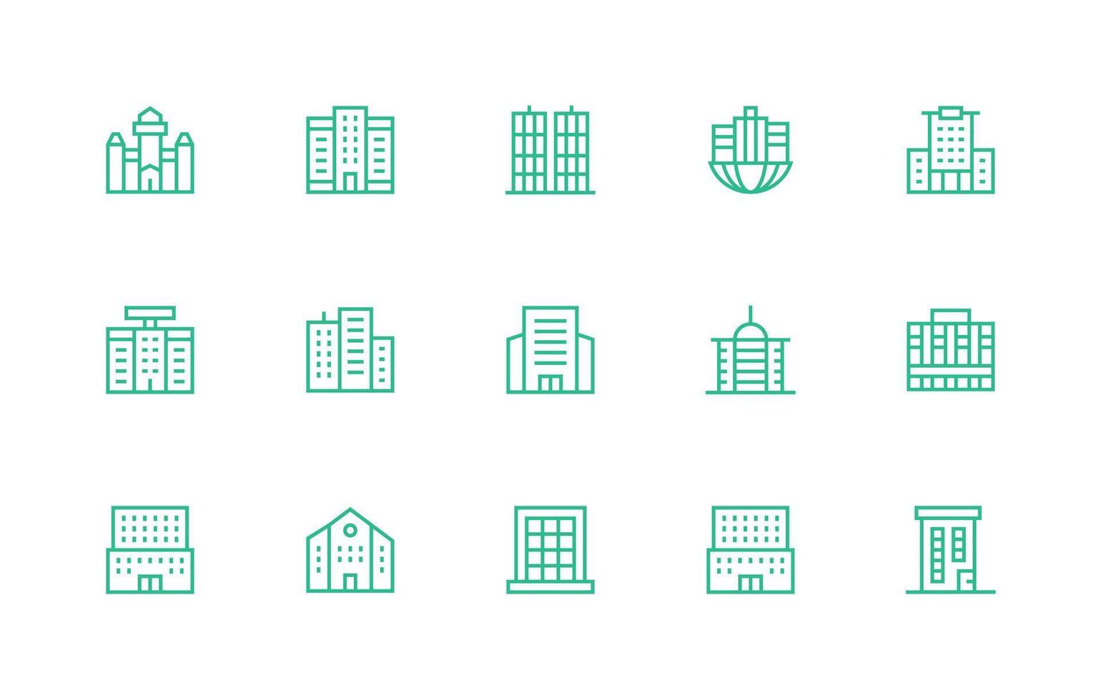 Downtown Icon Set with 15 Regular Line Graphics High-Resolution Icons for Any Platform Free Vector