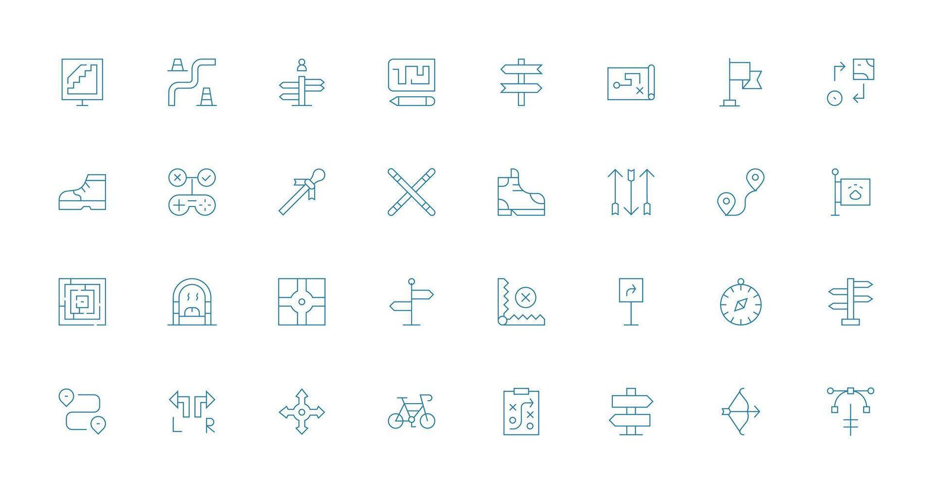 Path Icon Set with 32 Thin Line Graphics Icon Set for Web Free Vector