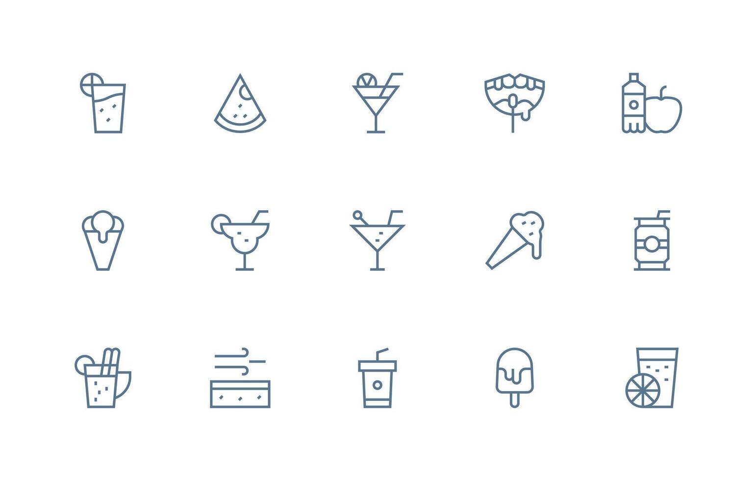 Refreshment featuring 15 Icons in Regular Line Design Complete Icon Bundle for Web Design vector