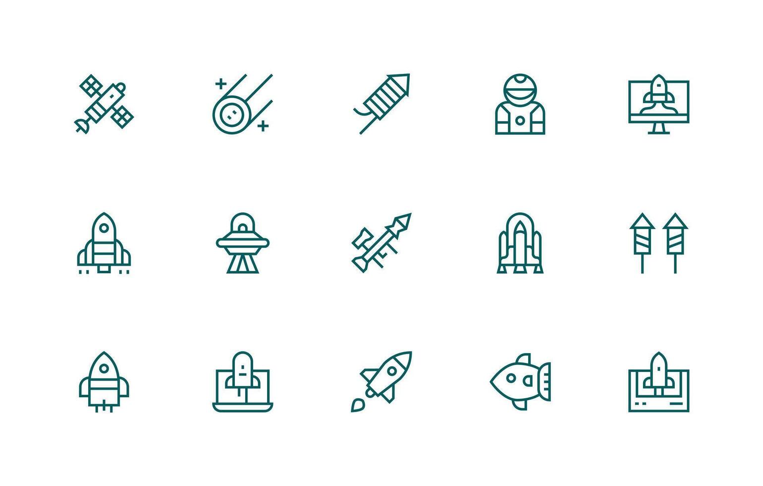 15 Regular Line Icons for Rocket Graphics All Device Compatible Icon Set vector