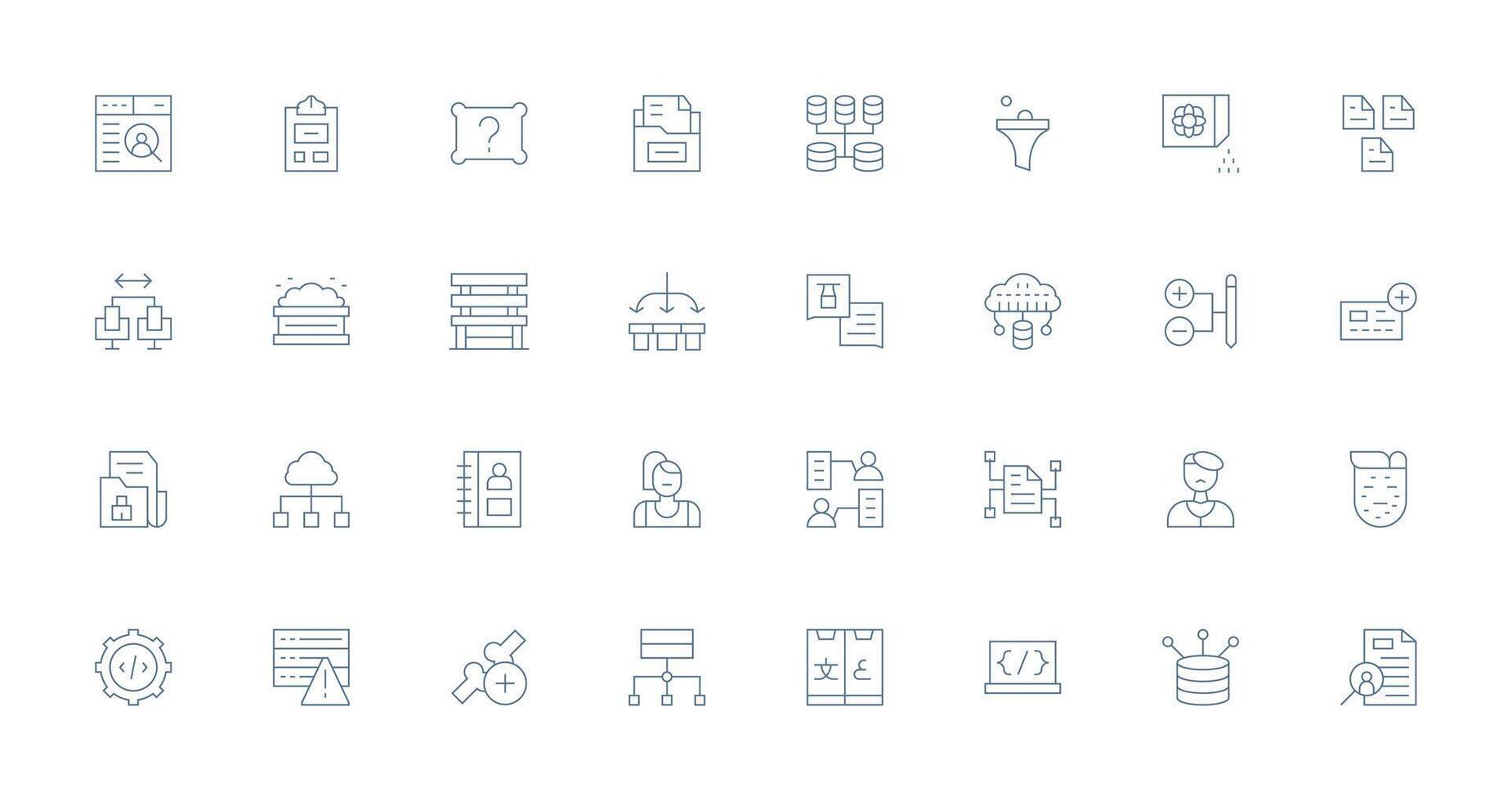 Thin Line Icons from Database Set with 32 Vectors Design Icon Pack Free Vector