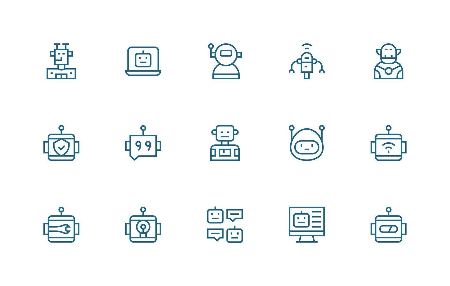 15 Regular Line Icons for Robot Graphics Scalable Icons for All Themes vector