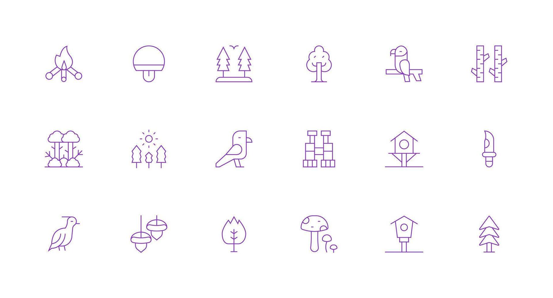 Forest Icon Set with 18 Minimal Line Graphics Minimal Icon Pack Free Vector