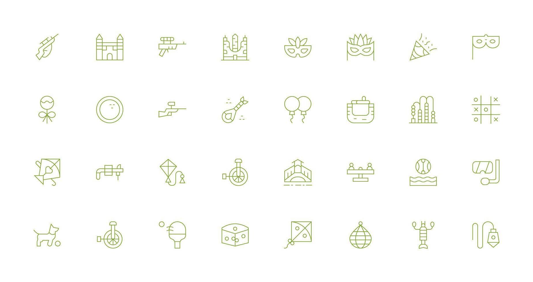 Thin Line Style Fun Icons with 32 Vectors Icon Set for Projects Free Vector