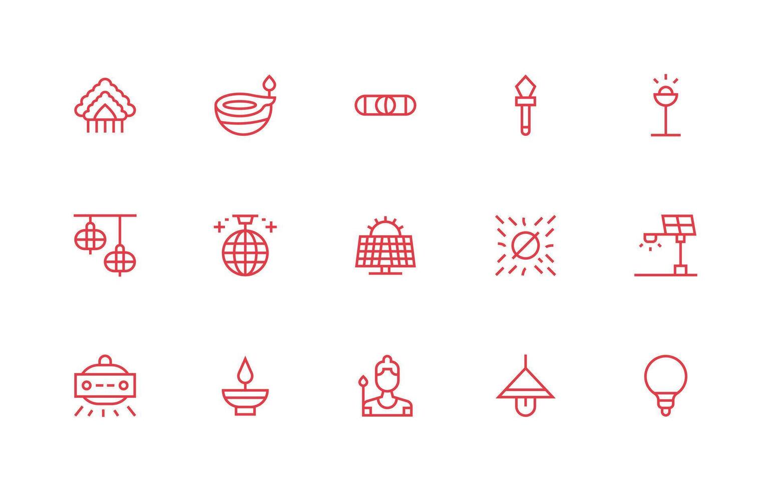 Light Set with 15 Regular Line Icons Responsive Icon Set for Flexible Layouts vector