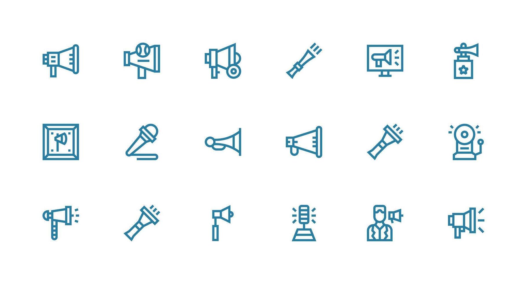 Public Address Set with 18 Strong Stroke Line Icons Clear and Concise Icon Set Collection vector