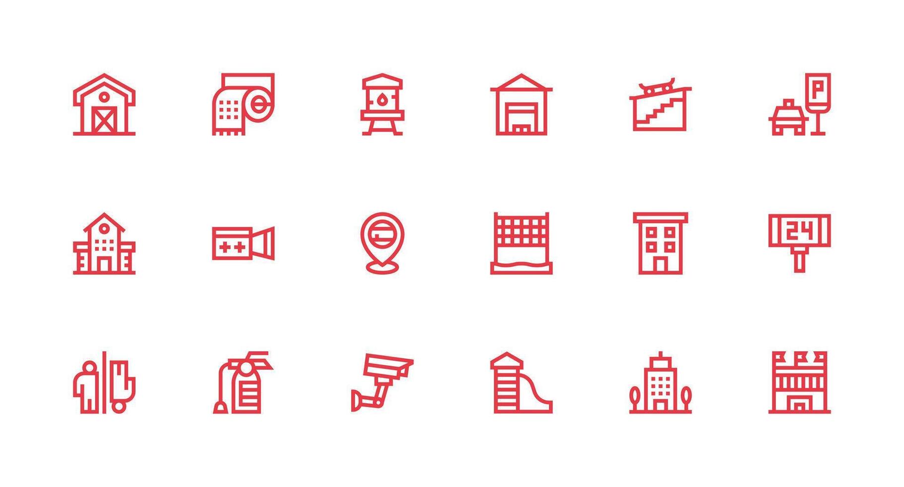 18 Strong Stroke Line Icons for Facility Graphics Flexible Icon System for Web Interfaces vector