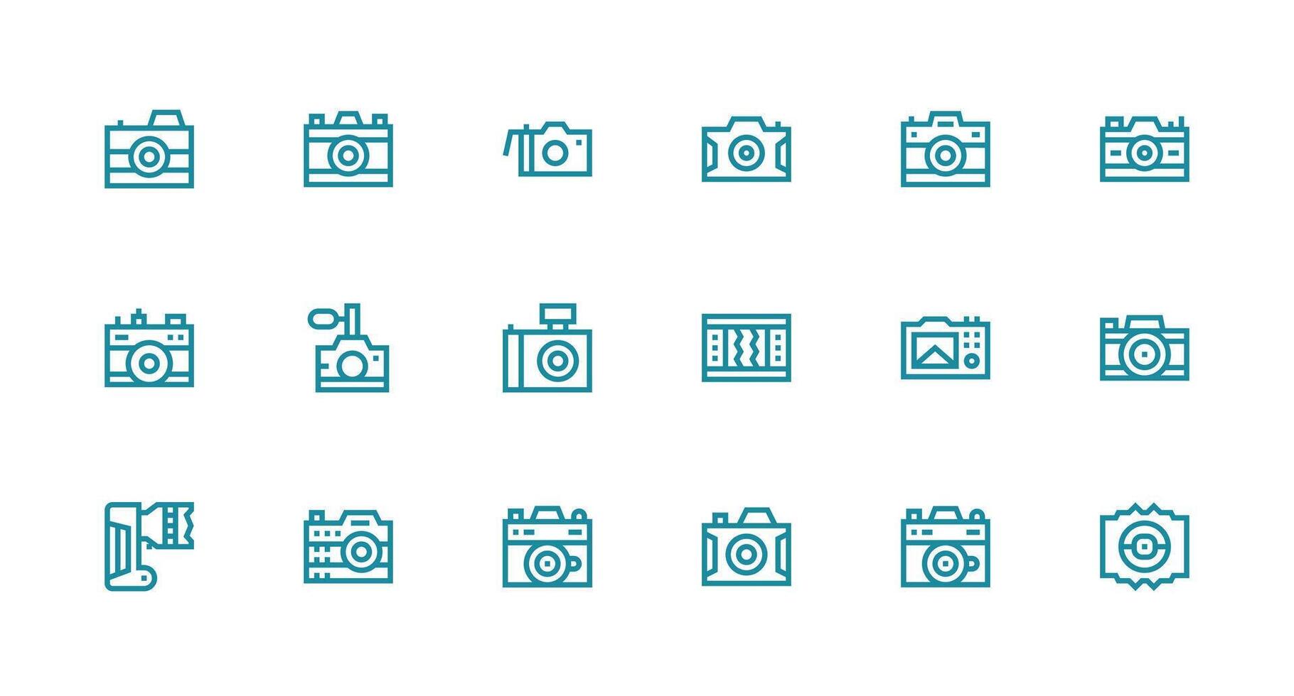 Shutter including 18 Strong Stroke Line Illustrations Minimal Icon Set for Interface Projects Free Vector